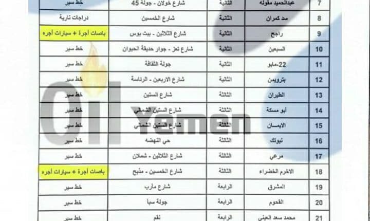 وفيما يلي كشف بأسماء المحطات التجارية العاملة في أمانة العاصمة صنعاء: