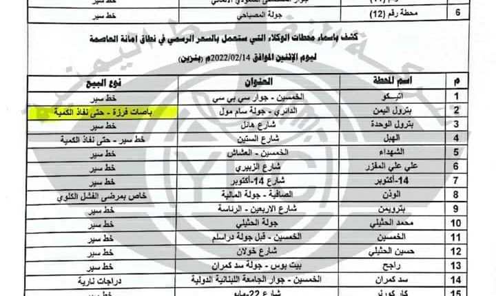 كشفت شركة النفط اليمنية عن أسماء محطات البنزين المعتمدة في العاصمة صنعاء اليوم الإثنين 14 فبراير 2022م ، بالسعر الرسمي من الكمية الواردة عبر ميناء الحديدة على السفينة الإسعافية “سي ادور” .