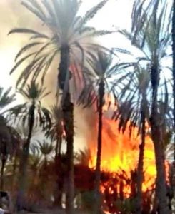 حريق هائل يلتهم المئات من أشجار النخيل بوادي حضرموت”صور”