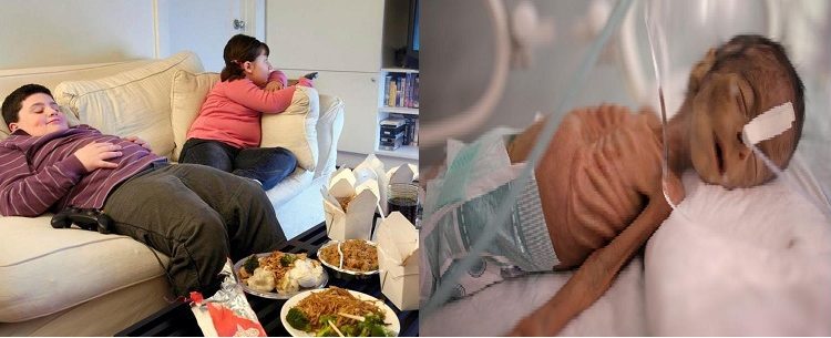 بالمقابل، ينعم المدنيين وأطفالهم في الدول التي تشارك العدوان على اليمن وفي مقدمتهم السعودية والإمارات بوافر الصحة، منغمسين في حياة البذخ والرفاهية التي وصلت إلى حد التحذير من “السمنة” المفرطة بين أطفال وشباب الخليج، بالإضافة إلى الدعوات المجتمعية للتخفيف من التبذير والإسراف في الطعام، الذي وصل إلى مستويات قياسية؛ فيما يُعاني شعب اليمن من الجوع والقتل بلا مبرر.