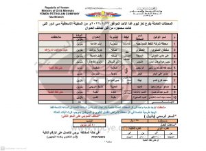 كشف بأسماء محطات شركة النفط ومحطات الوقود المعتمدة في العاصمة صنعاء وعدد من المحافظات اليوم الأحد 27 فبراير 2022م وبالسعر الرسمي من الكمية الواردة عبر ميناء الحديدة على السفينة الإسعافي “سي ادور”.