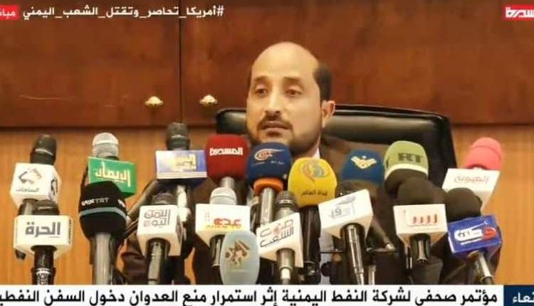 وخلال مؤتمر صحفي عقدته شركة النفط اليمنية بالعاصمة صنعاء حول استمرار قرصنة تحالف العدوان على سفن الوقود ومنعها من دخول ميناء الحديدة والتأثيرات السلبية لذلك، أوضح الاضرعي أن بريطانيا والولايات المتحدة الأمريكية تتولى إدارة السياسة الممنهجة لقرصنة سفن الوقود وحصار المشتقات النفطية بغرض تحقيق أهداف سياسية وعسكرية.