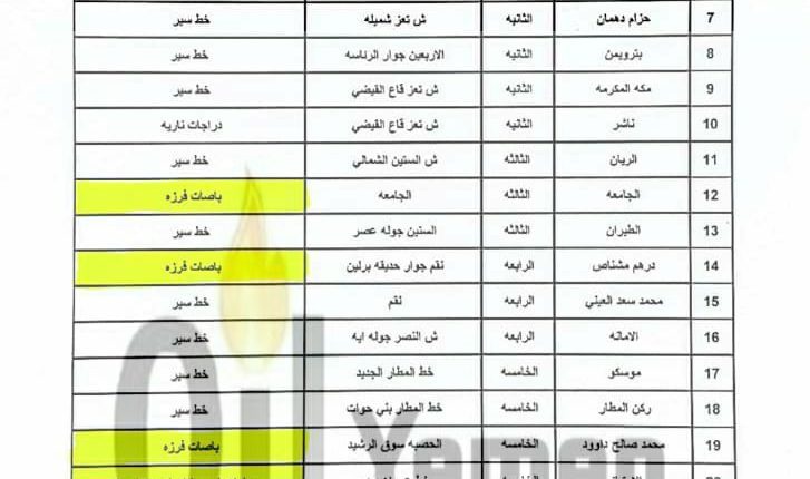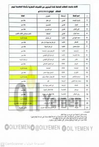 جدول خاص بأسماء محطات الوقود المعتمدة في صنعاء اليوم الثلاثاء