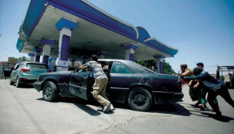 شاهد سيارات الاسعاف تقف في طابور يمتد لمسافة كيلو متر امام محطة شركة النفط اليمنية في العاصمة صنعاء للتزود بالوقود.