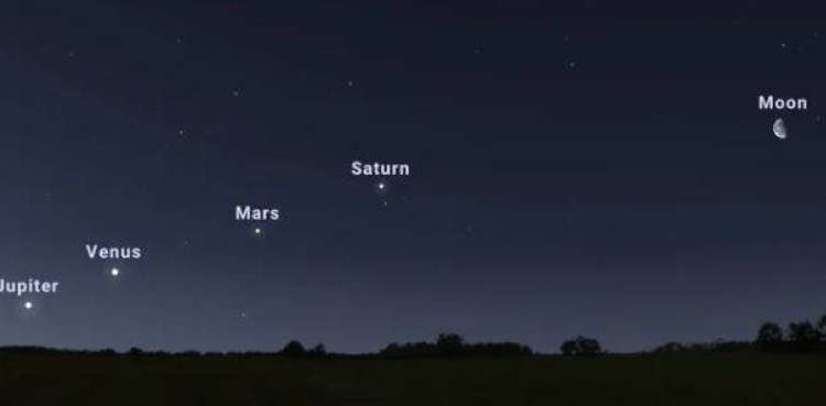 واعتبارا من منتصف الشهر، عند المشاهدة من نصف الكرة الشمالي، ستتمكن من رؤية زحل والمريخ والزهرة والمشتري مصطفين في محاذاة كوكبية شبه مثالية في سماء ما قبل الفجر.