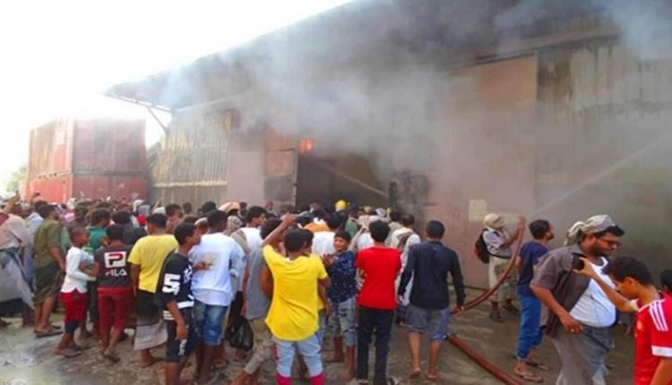 حريق يلتهم مستودع تجاري في عدن
