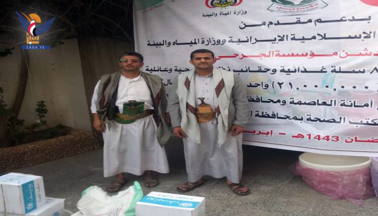 دشنت مؤسسة الجرحى اليوم بصنعاء مشروع توزيع السلال الغذائية والحقائب الصحية للجرحى في أمانة العاصمة و عدد من المحافظات بدعم من وزارة الادارة المحلية وسفارة جمهورية ايران بصنعاء.