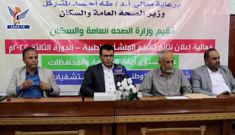 وجدد وزير الصحة التأكيد أن نتائج التقييم والتصنيف للمنشآت الطبية الخاصة ليست للتشهير وإنما للارتقاء بالخدمات الطبية وخلق تنافس بين المستشفيات لتقديم خدمات أفضل للمواطنين خاصة في ظل الظروف الصعبة التي يمر بها اليمن جراء استمرار العدوان والحصار ومنع دخول الدواء والتجهيزات الطبية .