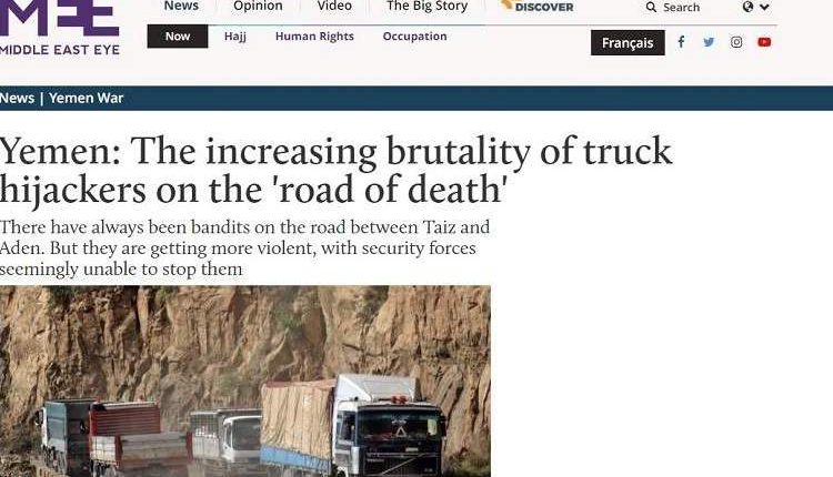 وتطرق التقرير الذي نشره موقع “ميدل إيست آي” إلى جريمة ارتكبتها المليشيات مؤخرا على طريق “طور الباحة” والتي أقدمت فيها على قتل الطفل أكرم العزعزي أثناء تواجده في الشاحنة التي كان يقودها والده، مشيرا إلى أن سائقي الشاحنات على ذلك الطريق نفذوا إضرابا للاحتجاج على تلك الجريمة.