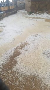 وأفادت مصادر محلية، أن منطقة “حبابة” ومديرية ثلا شهدت نزول زخات برد كبيرة غطت مدرجات زراعية واسعة.