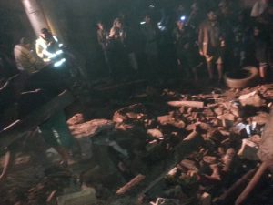 شاهد: انهيار منزل في العاصمة صنعاء.. والمواطنون يهرعون لمكان الحادث واخراج ثلاث عوائل قبل وقوع الكارثة.. صور+ تفاصيل