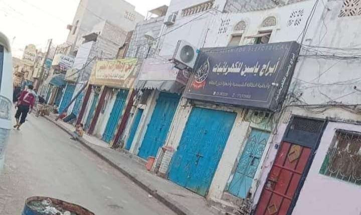 عم اضراب شامل في عدن ،الأربعاء، احتجاجاً على الإتاوات التي تفرضها ميليشيات الإنتقالي على المحلات التجارية.