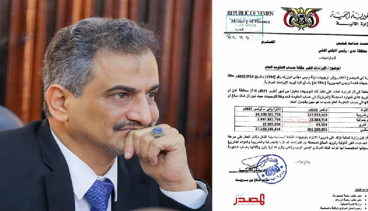 وفي مذكرةٍ أُخرى اتهمت ما يسمى وزارة المالية بحكومة الفنادق، منتحل صفة محافظ عدن بالاستيلاء على 27 ملياراً و710 ملايين ريال من إيرادات الحكومة وتوريدها إلى حسابات بنكية غير قانونية، مؤكّـدة أن المرتزِق أحمد لملمس لم يلتزم بتوريد كامل الموارد المحصلة (المركزية) إلى “الحساب الحكومي” وهو ما يكشف حجم النهب والفساد الذي تمارسه السلطات المرتزِقة متعددة الولاءات بين أبو ظبي والرياض.