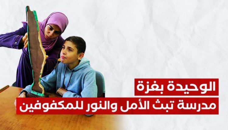تنهمك المعلمة إيمان مُنية داخل أحد فصول المدرسة الوحيدة في قطاع غزة للمكفوفين، لإيصال المعلومة لطلابها الذين وجدوا ضالتهم لإكمال مسيرتهم العلمية رغم المعيقات.