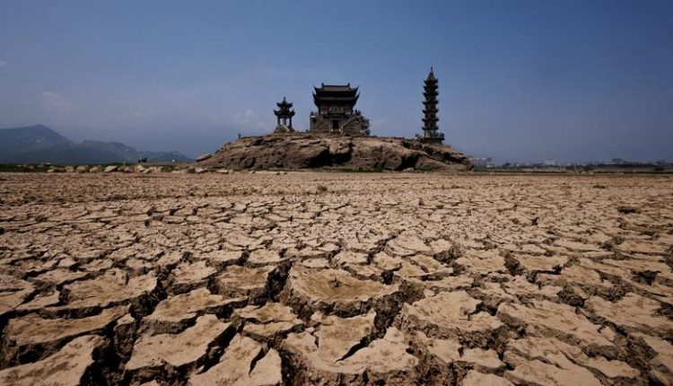 قارب يجلس في الحوض الجاف لسد لا بوكا حيث يواجه أكثر من نصف المكسيك ظروف جفاف معتدلة إلى شديدة ، في سانتياغو ، المكسيك