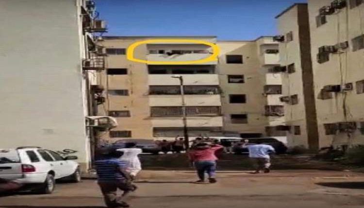 وشاهد موطنون المسنة وهي تهوى الى الارض من الدور الخامس حيث حاول عدد منهم كسر باب شقتها وانقاذها ولكن دون جدوى.