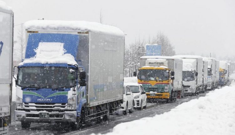 وتتساقط الثلوج بكثافة في المناطق الشمالية من اليابان منذ الأسبوع الماضي، ما أدى لتقطع السبل بمئات السيارات على الطرق السريعة، وتأخير خدمات التوصيل، ووفاة 11 شخصا أمس الأول.