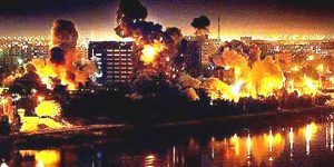 يذكر انه في 20 مارس 2003 بدأت الولايات المتحدة عملية غزو العراق دون موافقة من الأمم المتحدة، وقصفت الصواريخ الأميركية أهدافا في بغداد، متجاوزة بذلك القانون الدولي، بحجة امتلاك العراق لأسلحة دمار شامل لغرض السيطرة على العراق وتدميرها إنسانيًا وبنيانيًا، والسطو على ثرواته.