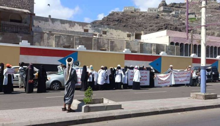 نظم العشرات من الأطباء يوم الأربعاء، وقفة احتجاجية في مدينة عدن الخاضعة للتحالف.