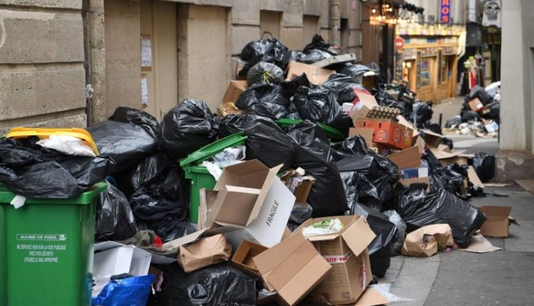 يضرب عمال جمع القمامة في باريس منذ 12 يوما مع إغلاق المحارق احتجاجا على إصلاح نظام التقاعد الذي يرفع سن التقاعد القانونية في هذا القطاع من 57 إلى 59 عاما.