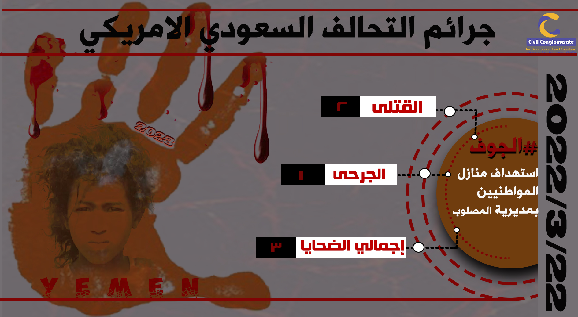 التوثيق المرئيمعرض الصور جرائم حدثت في مثل هذا اليوم 22مارس 2022م On مارس 22, 2023 Share الجوفاليمنجرائمعدوان Share FacebookTwitterGoogle+WhatsAppPinterestالبريد الإلكترونيLinkedinTelegramPrint