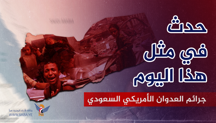 وفي مثل هذا اليوم من العام 2016م استشهد مواطنان وأصيب ثالث جراء غارة شنها طيران العدوان على سد آل عواض بمديرية ردمان آل عواض بالبيضاء، كما استشهد مواطن جراء استهداف طيران العدوان لمنزل أحد المواطنين في مديرية المتون بالجوف، كما شن طيران العدوان سلسلة غارات على مديرية نهم وغارة على مديرية أرحب وأخرى على قرية عمد في منطقة جربان بمديرية سنحان بمحافظة صنعاء ما أدى إلى تضرر منازل المواطنين وممتلكاتهم، كما استهدف طيران العدوان بقنابل عنقودية مناطق متفرقة من مديرية صرواح بمحافظة مأرب واستهدف بعدة غارات شمال سوق المديرية.