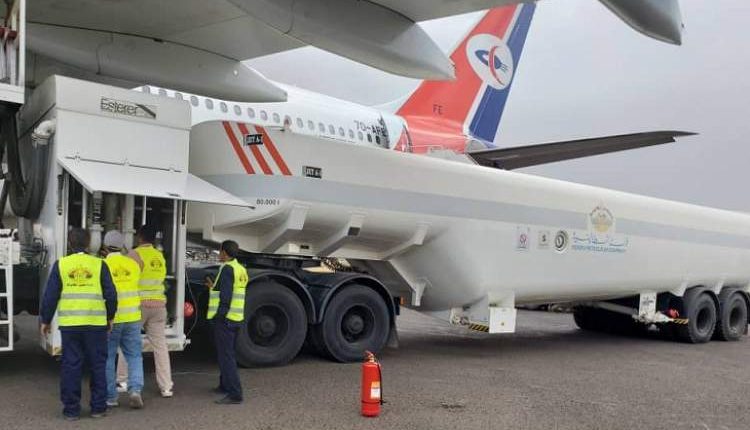 وقال في تغريدة له بتويتر: لاول مرة منذ بداية العدوان يتم تزويد طيران اليمنية بوقود الطيران من مطار صنعاء الدولي.