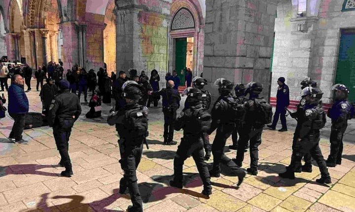 التقاريرالتوثيق المرئيتقارير دولية صور من اعتداءات الاحتلال في المسجد الأقصى On أبريل 6, 2023 Share أصيب عشرات المصلين المعتكفين بالاختناق، ليل الثلاثاء/الأربعاء، عقب اقتحام قوات الاحتلال الإسرائيلي المصلى القبلي في المسجد الأقصى المبارك، وإطلاقها الرصاص المعدني المغلف بالمطاط وقنابل الغاز السام، والصوت صوبهم. اعتدائات علی الفلسطینیینالاحتلال الاسرائیلیالمسجد الاقصیحدیث الصور Share FacebookTwitterGoogle+WhatsAppPinterestالبريد الإلكترونيLinkedinTelegramPrint