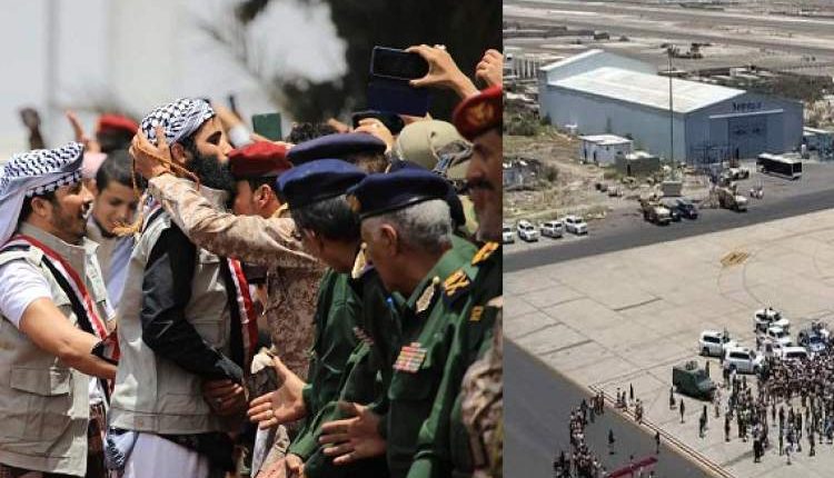لافتين الى الفوضى العارمة التلي شهدها مطار عدن لحظة وصول الاسرى