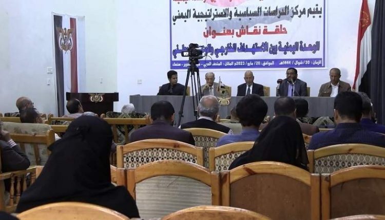 نظم مركز الدراسات السياسية والاستراتيجية اليمني في العاصمة صنعاء اليوم السبت، حلقة نقاشية بعنوان (الوحدة اليمنية بين الاستهداف الخارجي والوعي الوطني).