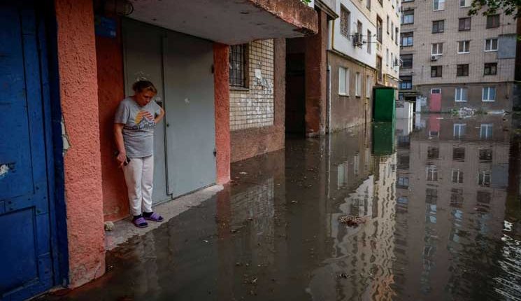 بالصور ؛ عمليات إجلاء السكان مستمرة بعد تدمير جزئي لسد كاخوفكا في جنوب أوكرانيا