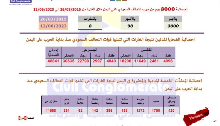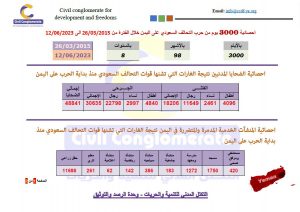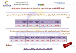 التقاريرالتوثيق المرئيتقارير محلية احصائية 3000 يوم من حرب التحالف السعودي على اليمن On يونيو 13, 2023 Share احصائية 3000 يوم من حرب التحالف السعودي على اليمن خلال الفترة من 26/03/2015 الى 12/06/2023 #امريكا_تقتل_وتحاصر_الشعب_اليمني View Fullscreen Share FacebookTwitterGoogle+WhatsAppPinterestالبريد الإلكترونيLinkedinTelegramPrint