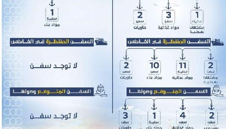 واظهرت ذات النشرة الملاحية وجود وقدوم وانتظار 41 سفينة في ميناء الحديدة وهو اكبر عدد للسفن في الميناء منذ سنوات طويلة .