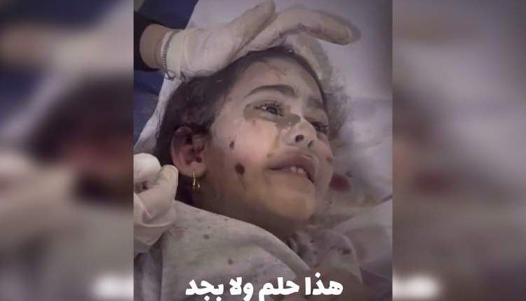 واظهر مقطع الفيديو الطفلة “مرح” ذات الخمس سنوات والجروح تملأ وجهها بأحد مستشفيات غزة وهي تسأل طبيبها “هذا حلم وإلا حقيقيقة”، “هذا حلم وإلا بجد”.