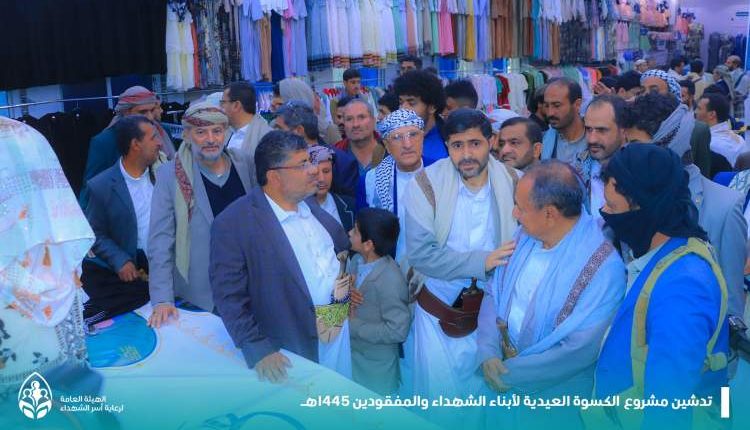 محمد الحوثي يدشن مشروع كسوة العيد لابناء الشهداء