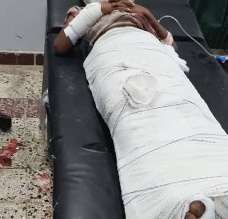 وأوضح مصدر أمني بالمحافظة أن خمسة مواطنين أصيبوا بينهم طفل إصابته بليغة إثر قذيفة ألقتها طائرة مسيرة لمرتزقة العدوان في منطقة أخدوع أسفل بمديرية مقبنة.