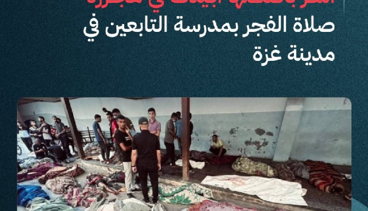 وقالت الرابطة في بيان “في بداية الشهر الحادي عشر من العدوان الصهيوني تتعمد إسرائيل وبوحشية مفرطة الإيغال في الدم الفلسطيني المسلم وتستبيح كل المحرمات وتقوم بقصف مدرسة التابعين وقت صلاة الفجر وتحول المدرسة والمصلين فيها إلى أشلاء وبحيرة دم تحت ذرائع ومبررات واهية وكاذبة لا يصدقها الإسرائيليون وحلفاؤهم وعملاؤهم”.