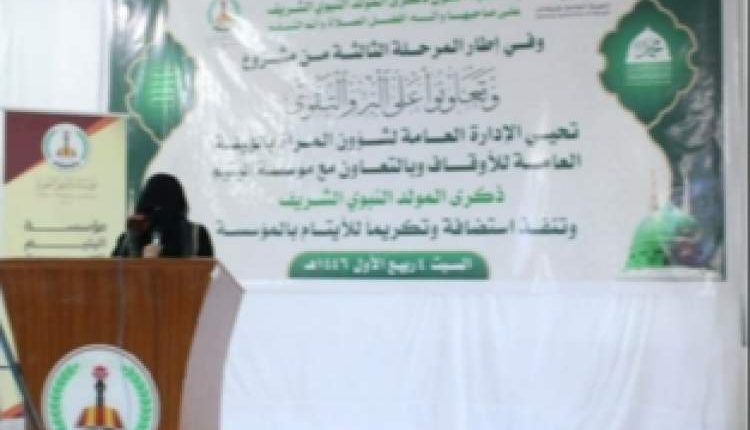 من جانبها اكدت ممثلة مؤسسة اليتيم أن ذكرى المولد النبوي مناسبة هامة لتجديد الإلتزام بتعاليم النبي محمد صلى الله عليه وآله وسلم وتعزيز روح الأخوة والتعاون بين الناس.