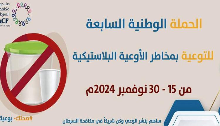 جاء ذلك في تدشين صندوق مكافحة السرطان بصنعاء، الحملة الوطنية السابعة للتوعية بمخاطر الافراط في استخدام المواد البلاستيكية تحت شعار “لحماية صحتك وبيئتك”. والتي تستمر حتى نهاية شهر نوفمبر الحالي.