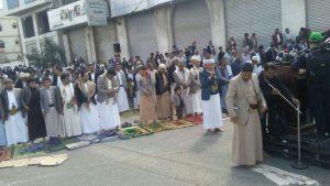 The protesters demanded in a statement that the ban on Sanaa International Airport and Ras Issa port be lifted and the company’s oil facilities and fuel stations be neutralized from the systematic attack of the aggression coalition.