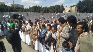 During the protest vigil, YPC’s spokesperson Amin al-Shabati stated that “Saudi-led aggression coalition” had released one of the eight oil ships held at sea.