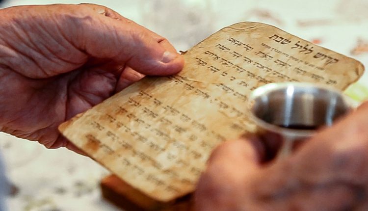 About to turn 92, he bows before the dinner table full of wine glasses and pieces of bread, and performs the Hadlakat Nerot — the Jewish ritual of lighting candles at dusk.