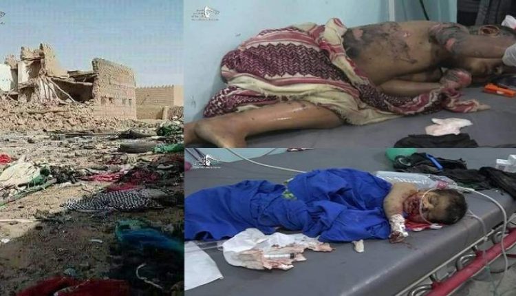 The leadership of al-Jawf province and the local authority in the province condemned the crime committed by the aggression coalition against the family of a citizen in Al-Masafa area, east of Al-Hazm district, killed and wounded 31, mostly children and women.