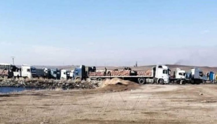 Local sources reported to “SANA” agency in Hasaka that a column of 21 trucks loaded with wheat from the silos of Tal Ala started leaving the silo yard, where the first truck left at 2:15 pm yesterday afternoon and headed to the illegal Al-Waleed crossing, while the rest of the trucks continued to leave, with a difference. My time is about half an hour.