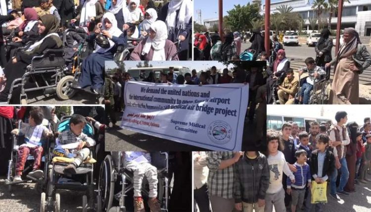 Patients, who need to have treatment abroad, organized a protest, Sunday, at Sana’a international Airport, condemning its arbitrarily closure by US-Saudi aggression.