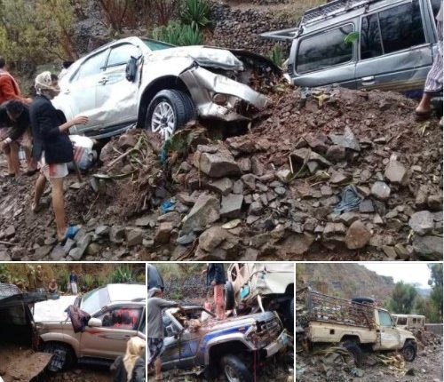 Taiz province witnessed heavy rains which have caused massive torrential floods in all several areas, washing away countless cars and vehicles, local sources said.