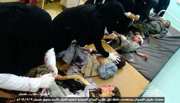 In August , 2018, most international organizations denounced strongly what the American-Saudi aggression carried out , targeting a bus carrying students in the middle of Dhahyan market in Saada governorate, which resulted in 50 dead and more than 70 wounded, most of them children.