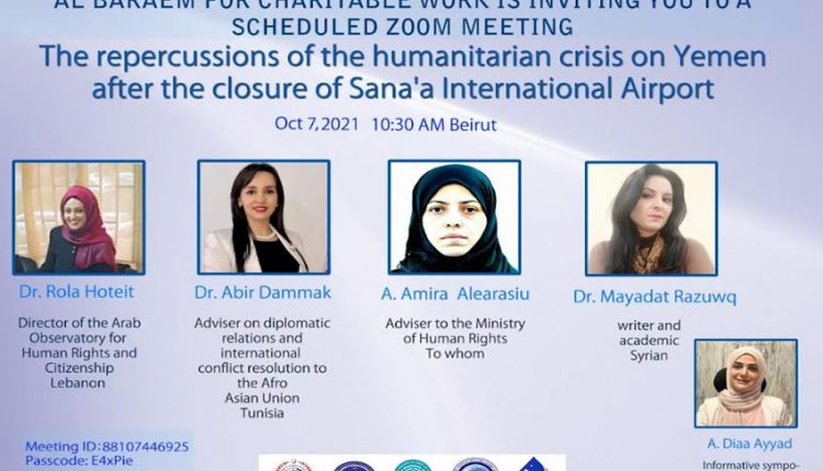 The Al Baraem Association, in cooperation with the Yemeni Center for Human Rights has on Thursday organised a symposium under the title, “The repercussions of the humanitarian crisis on Yemen after the closure of Sana’a International Airport”, in the sidelines of the 48th session of the Human Rights Council in Geneva.