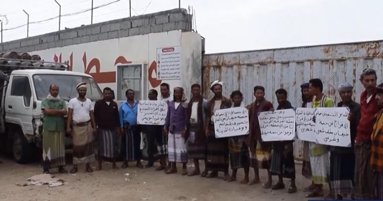 Dozens of residents of Haifan district of Taiz province held on Sunday a protest rally to denounce the suspension of their share of domestic gas by Saudi-exiled Hadi government.