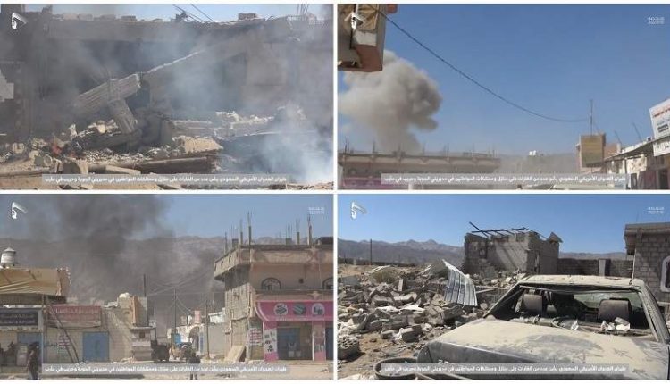 US-Saudi aggression launched a series of raids on Harib and Al-Jobah districts, destroying a number of houses and farms.